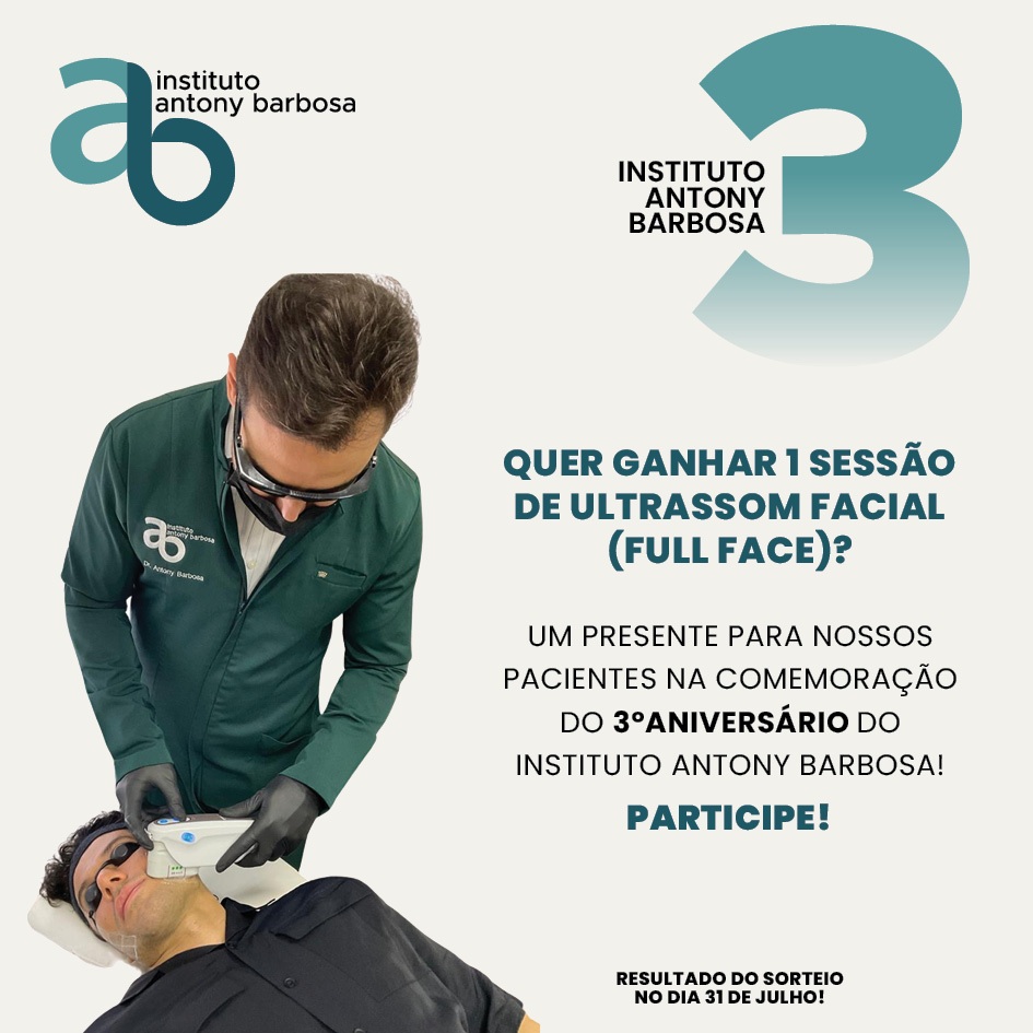 No aniversário de 3 anos do Instituto Antony Barbosa, iremos sortear uma sessão de Ultrassom Facial (Full Face).